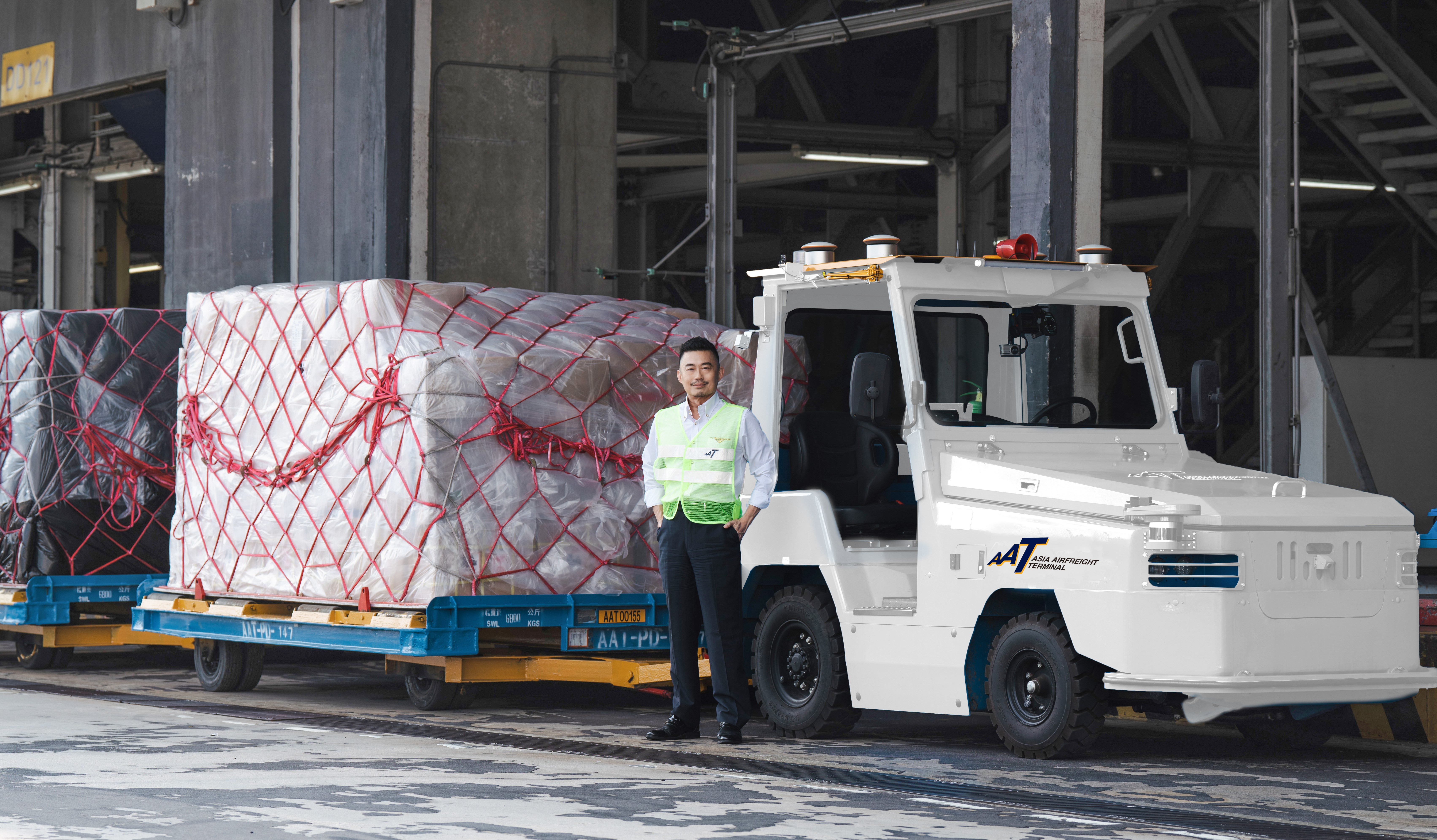 Mike Chew, CEO of Asia Airfreight Terminal, with the Autonomous Electric Tractor (AET), the pioneering initiative that secured the CILT Award 2025 for Service Excellence. The award will be presented at the CILTHK Gala Dinner on 7 November 2025.